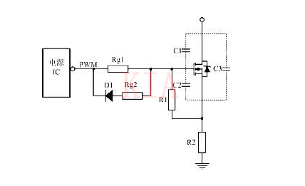 這使關斷時間減小,同時減小關斷時的損耗。Rg2是防止關斷的時電流過大,把電源IC給燒掉。