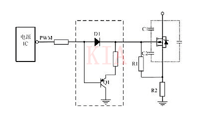 這種驅動電路作用在于,提升電流提供能力,迅速完成對于柵極輸入電容電荷的充電過程。這種拓撲增加了導通所需要的時間,但是減少了關斷時間,開關管能快速開通且避免上升沿的高頻振蕩。