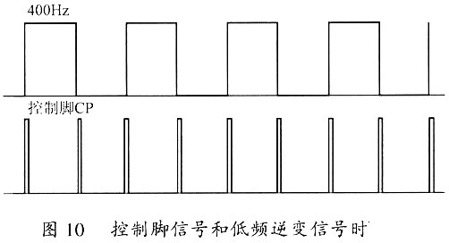 圖8是半橋驅(qū)動門極信號的產(chǎn)生電路,其中的D觸發(fā)器、兩個(gè)與門和兩個(gè)或非門組合在一起用來減小驅(qū)動信號的占空比。而這個(gè)功能由控制腳(CP)來控制,當(dāng)CP為高時(shí),驅(qū)動的占空比就可以減小為大約原來的一半。這樣我們就可以在每個(gè)輸出電流換向的瞬間給CP一個(gè)高電平,減小驅(qū)動的占空比,以大大減小甚至消除過沖電流。圖9為一個(gè)簡單CP控制信號的產(chǎn)牛電路。圖10為腳CP信號與低頻逆變信號的時(shí)序圖。