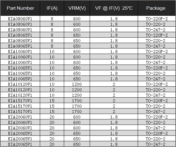 KIA半導體的SiC二極管利用了碳化硅出色的物理特性,其動態反向恢復特性比硅好4倍、正向導通電壓VF比它低15%。
