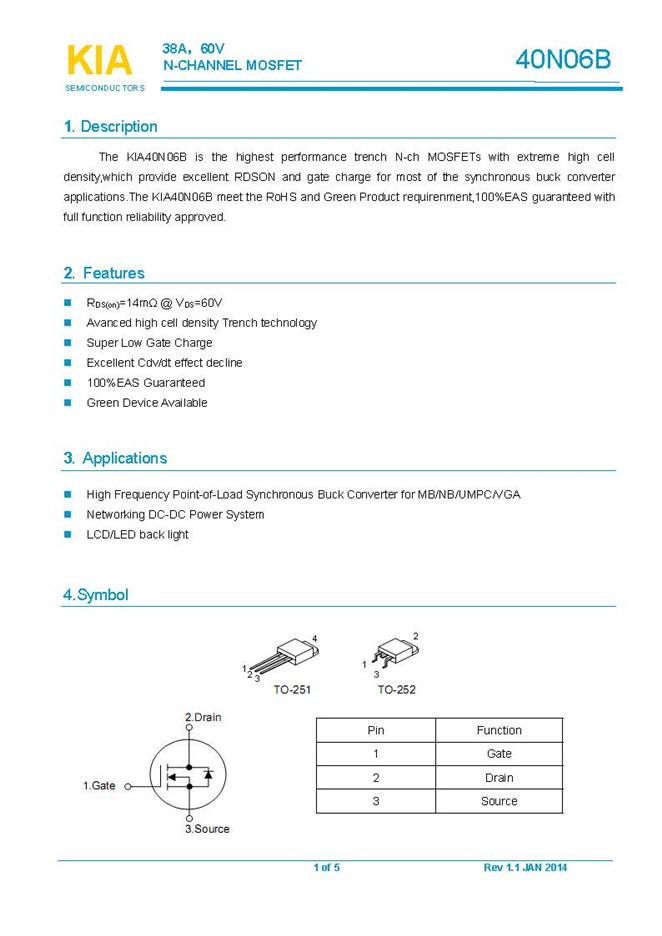 參數: ID(A): 38 BVDSS(V): 60 RDS(ON): 0.018 Qg(nC): 17.6 Package: TO-251、TO-252