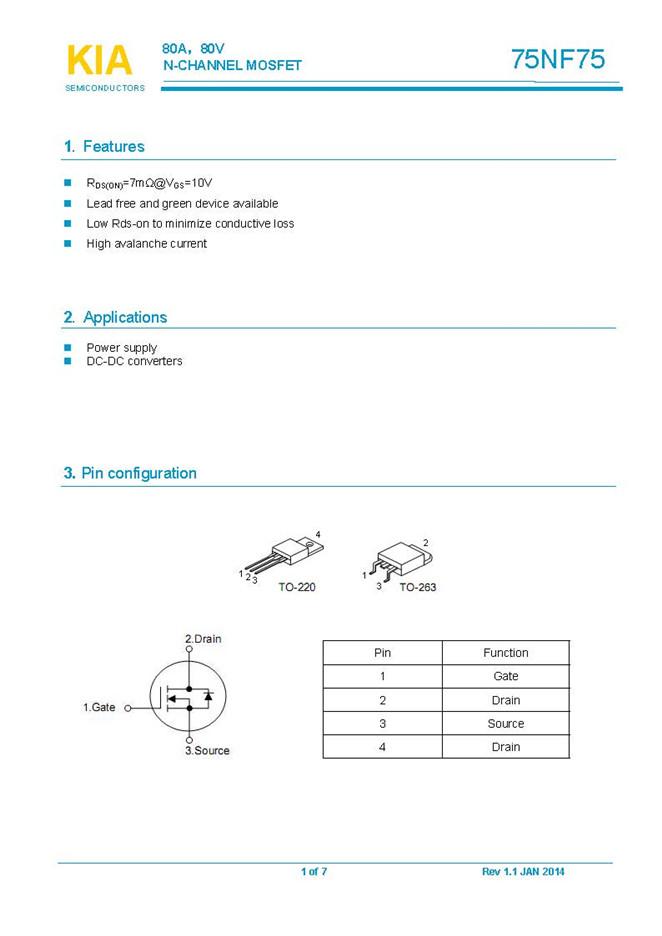 參數(shù): ID(A): 80 BVDSS(V): 80 RDS(ON): 0.011 Qg(nC): 76 Package: TO-220、TO-263