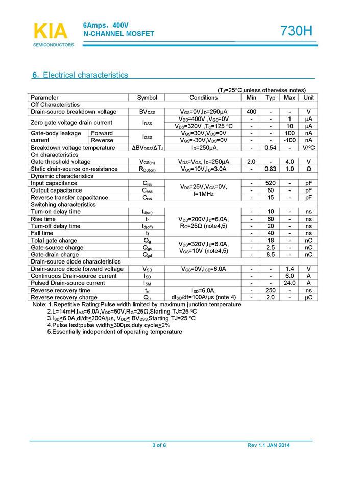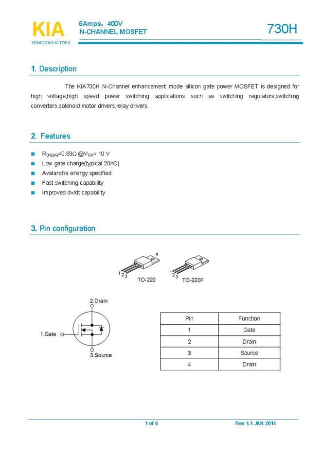 參數: ID(A): 6    BVDSS(V): 400    RDS(ON): 1    Qg(nC): 18    Package: TO-220、TO-220F TO-251 TO-252