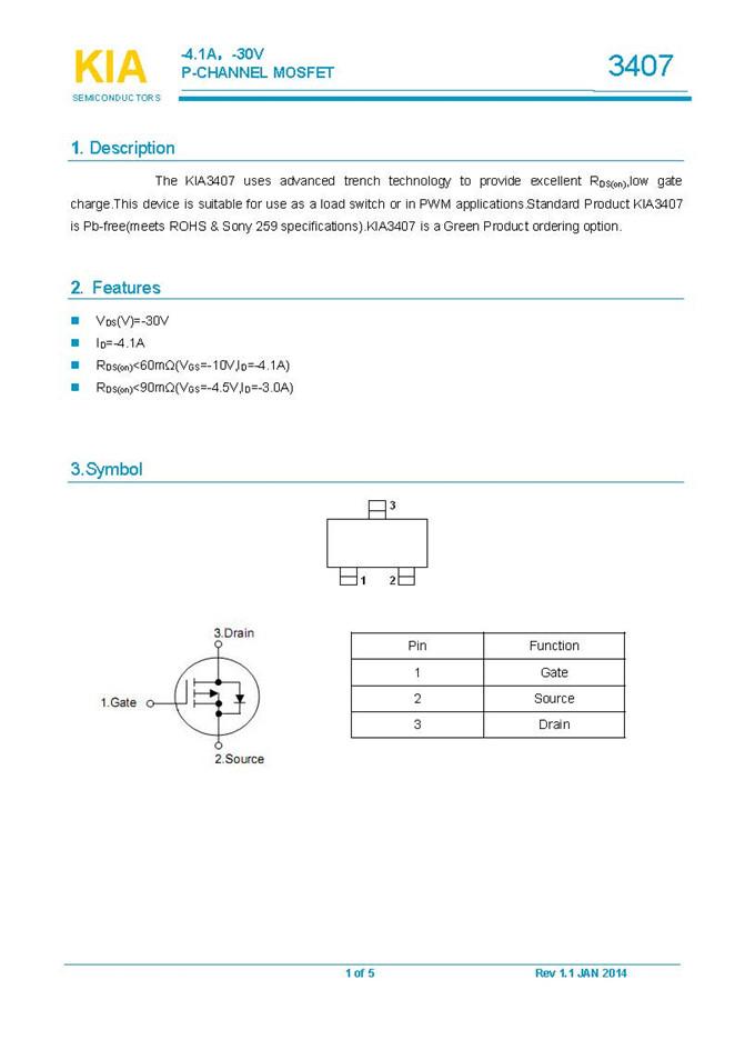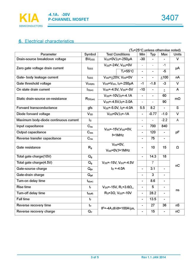 參數: ID(A): -4.1    BVDSS(V): -30    RDS(ON): 0.06    Qg(nC): 18    Package: SOT-23