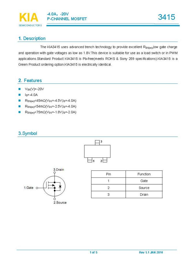 參數: ID(A): -4    BVDSS(V): -16    RDS(ON): 0.045    Qg(nC): 17.2    Package: SOT-23