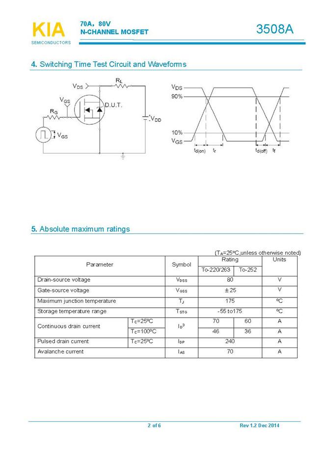 參數: ID(A): 70 BVDSS(V): 80 RDS(ON): 0.011 Qg(nC): 60 Package: TO-252、TO-263、TO-220