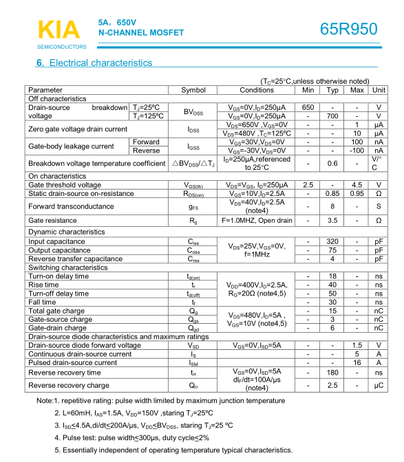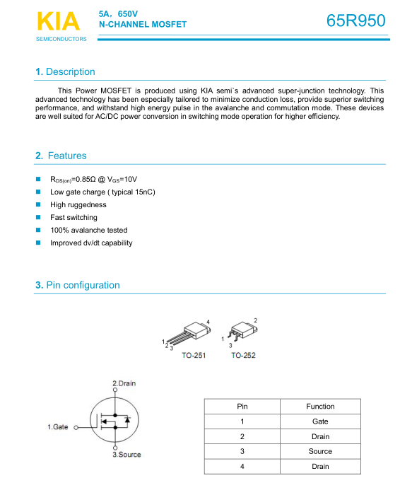 參數(shù): ID(A): 5    BVDSS(V): 650    RDS(ON): 0.85    Qg(nC): 15    Package: TO-251、252、263、220F
