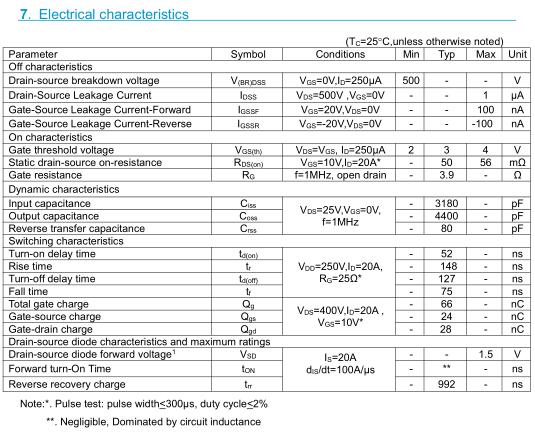 參數: ID(A): 60 BVDSS(V): 500 RDS(ON): 0.056 Qg(nC): 66 Package: TO-220F、247