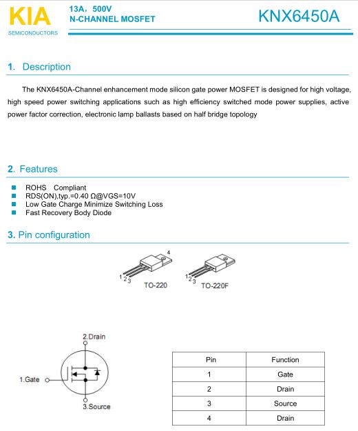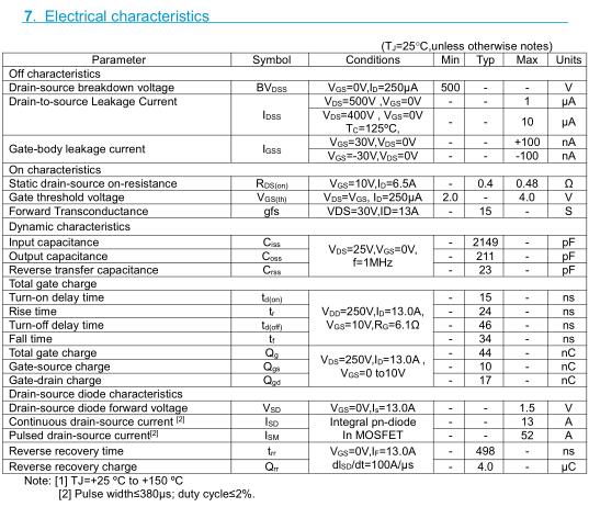 參數: ID(A): 13 BVDSS(V): 500 RDS(ON): 0.4 Qg(nC): 44 Package: TO-220F