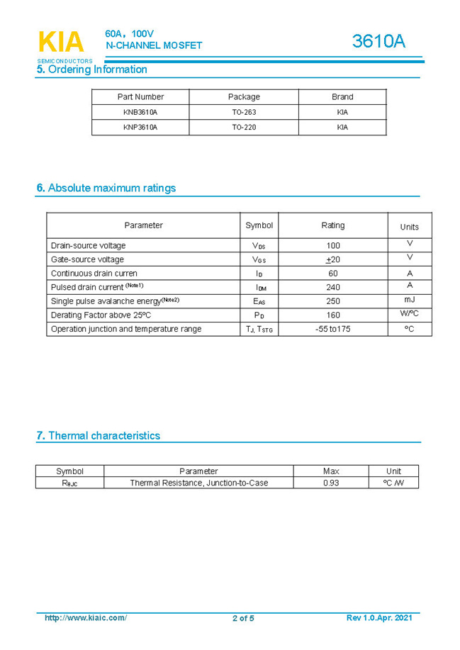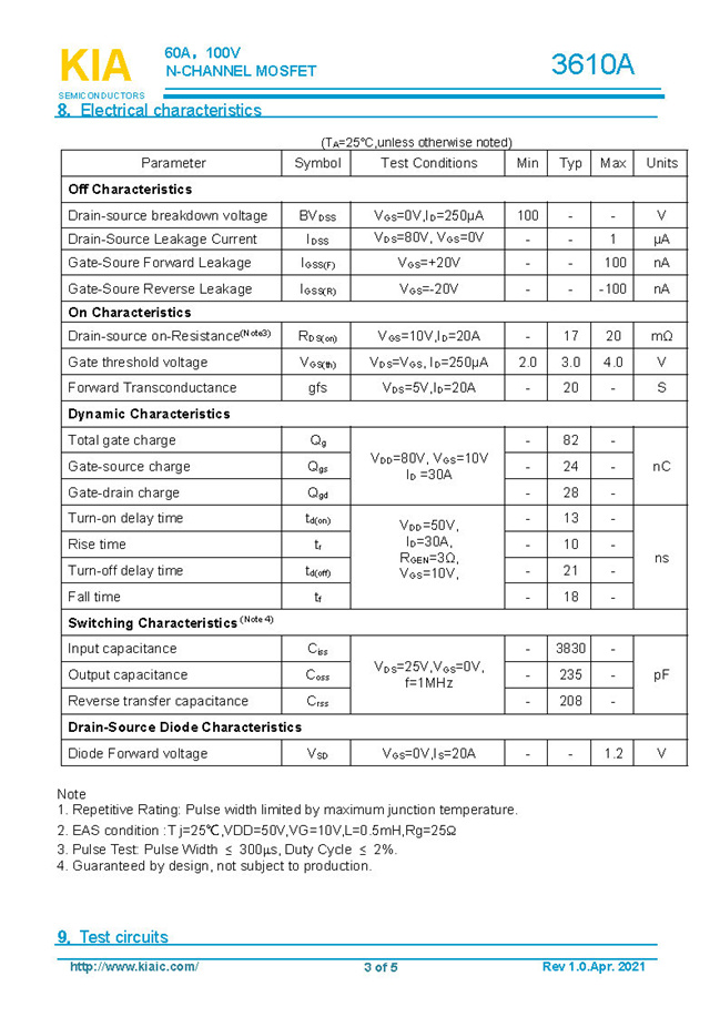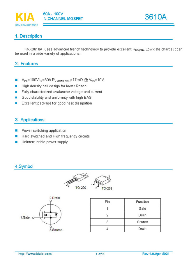 參數: ID(A): 60    BVDSS(V): 100    RDS(ON): 17mΩ    Qg(nC): 82    Package: TO-220.TO-263