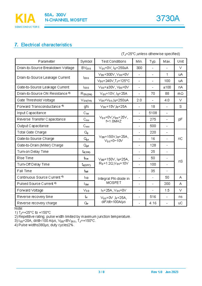 參數: ID(A): 50    BVDSS(V): 300    RDS(ON): 70mΩ    Qg(nC): 220    Package: TO-3P