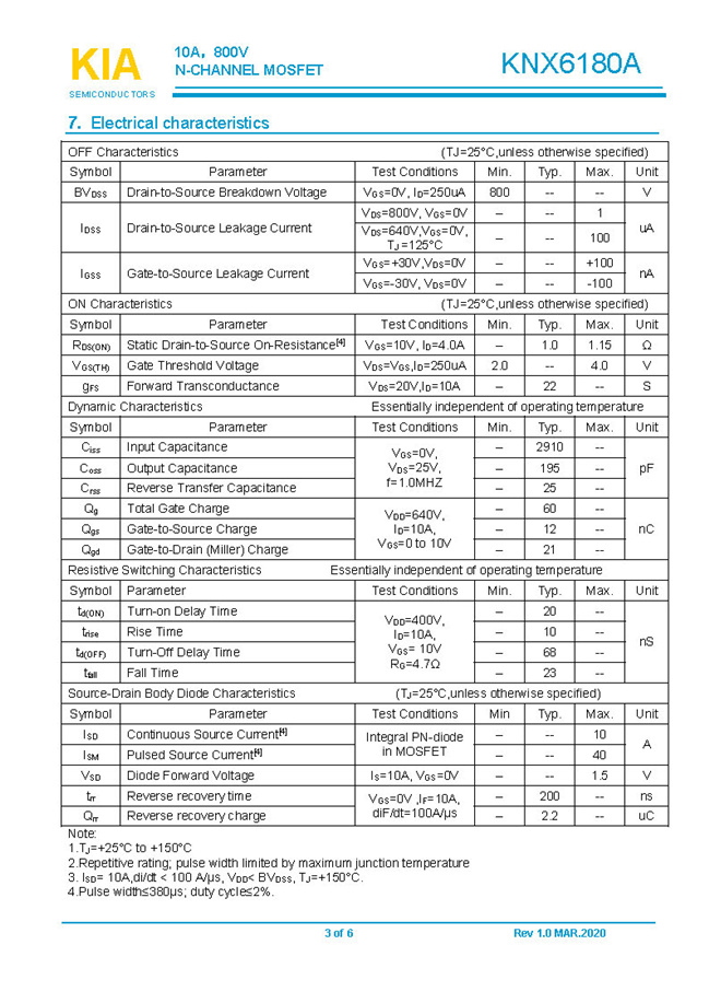 參數: ID(A): 10    BVDSS(V): 800    RDS(ON): 1.0Ω    Qg(nC): 60    Package: TO-220.TO-220F