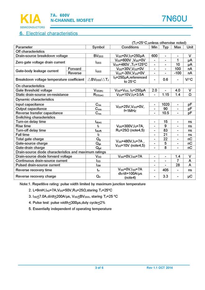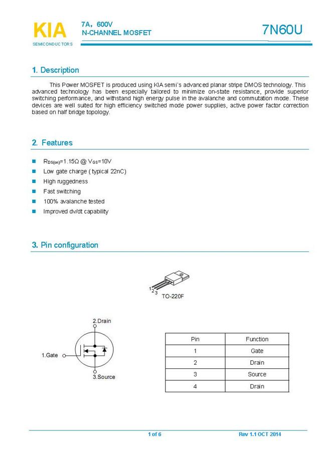 參數: ID(A): 7    BVDSS(V): 600    RDS(ON): 1.4    Qg(nC): 22    Package: TO-220F